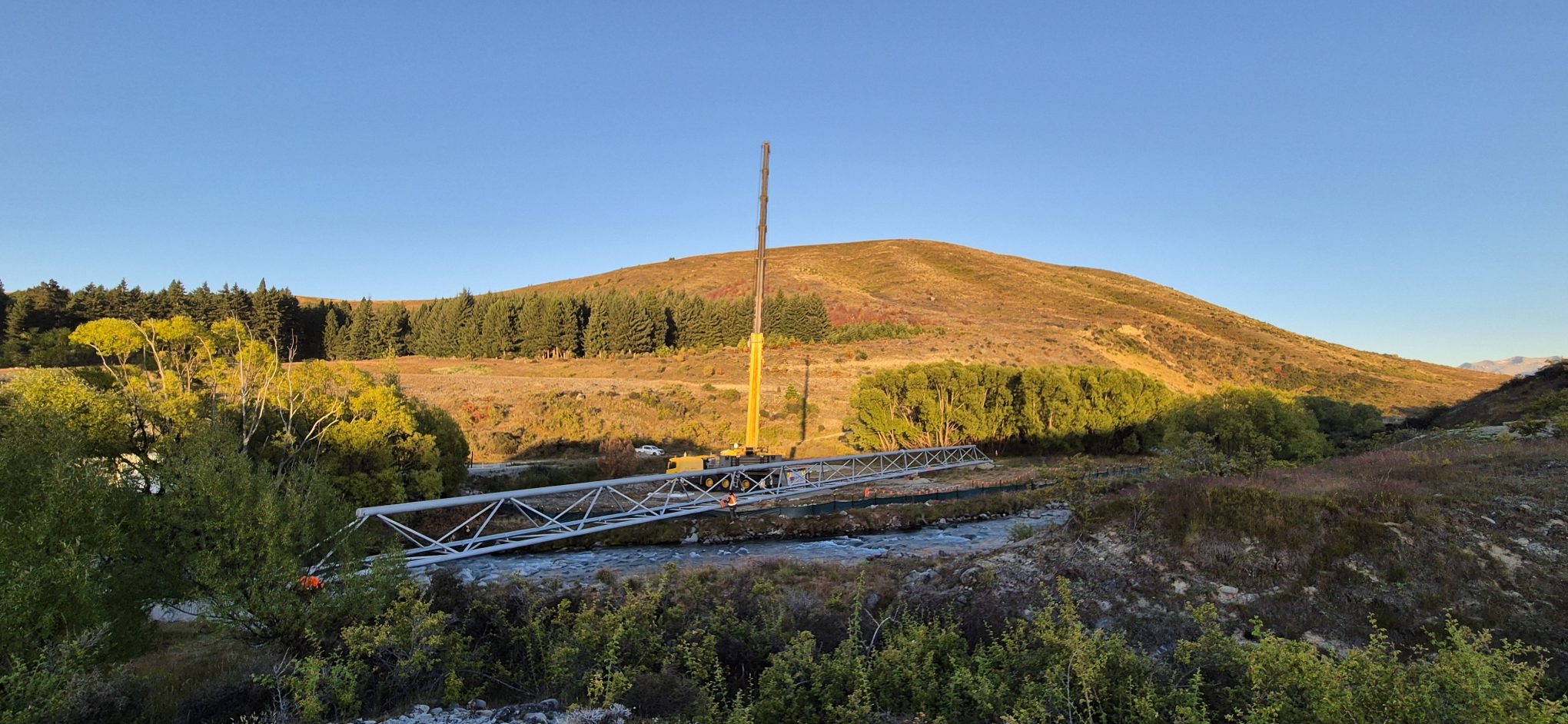 Check out this 70-metre spanning steel space truss pipe bridge. We designed this for SEIPP Construction in 2024 as part of their works for a large pipe works installation in the South Island of New Zealand.
